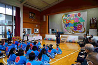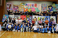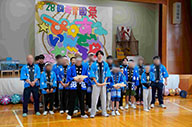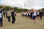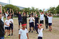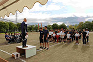 閉会式で子どもたちを称えて万歳 万歳 万歳