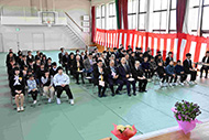 閉会式で子どもたちを称えて万歳 万歳 万歳