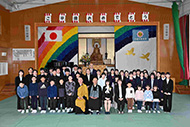 閉会式で子どもたちを称えて万歳 万歳 万歳